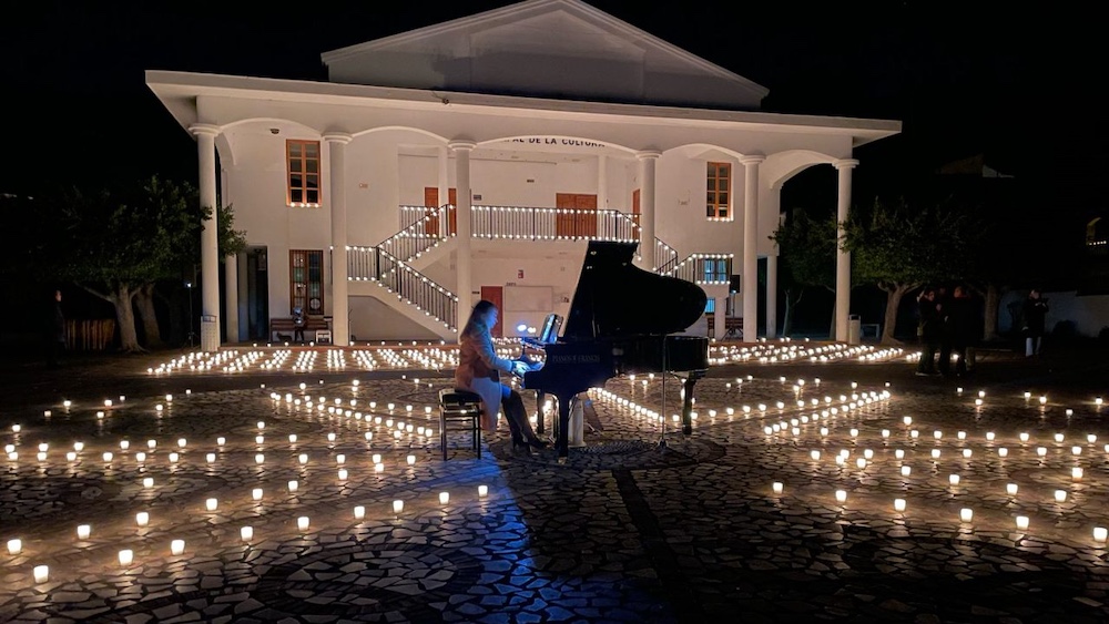 Stämningsfull pianokonsert med levande ljus.