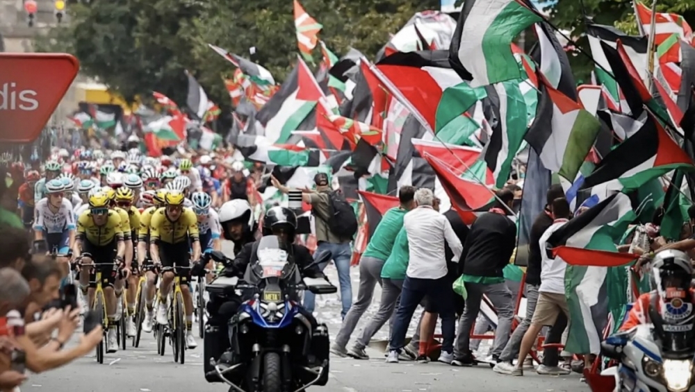 Protesterna mot de israeliska cyklisterna har präglat årets cykellopp och det är nu oklart om Vuelta a España kommer att kunna fullföljas. Vid målfållan i Bilbao stoppade delar av publiken klungan och kastade flygblad, vilket skapade en situation som polisen bedömde som svår att kontrollera.