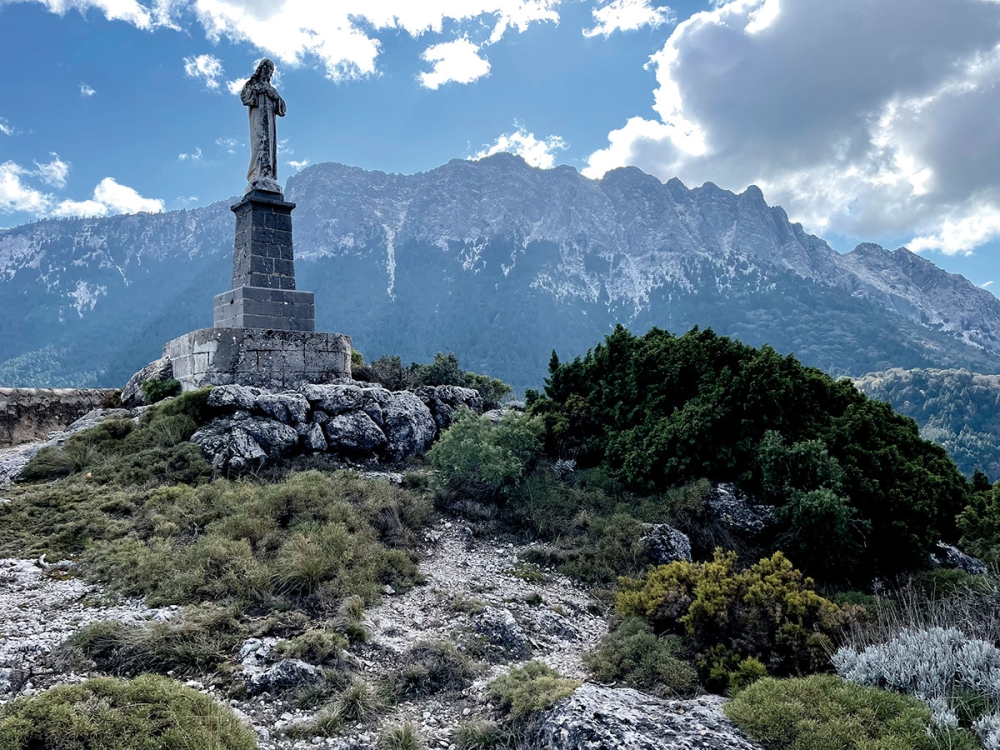 Slutmålet är monumentet Sagrado Corazón, en staty av Jesus som reser sig på en klippa nere i dalen och med utsikt över hela Sierra de Grazalema. Att stå här efter flera timmars vandring och låta blicken vandra över de böljande bergskedjorna man just vandrat i ger en känsla av att befinna sig på en gräns mellan himmel och jord.