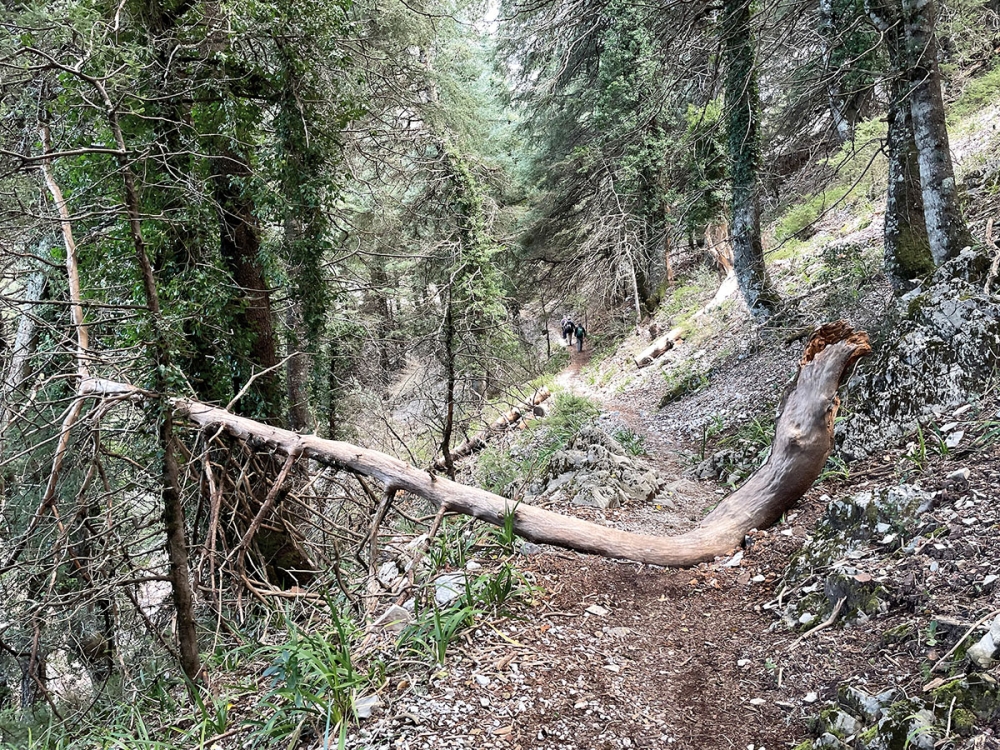 Vid passet planar vandringen ut och man leds in i själva hjärtat av rutten – pinsaparskogen. Denna sällsynta gran, Abies pinsapo, är en relikt från istiden och växer endast i begränsade områden i södra Spanien och norra Marocko. Träden kan bli flera hundra år gamla och står ofta så tätt att de skapar en mörkgrön kupol. Ljuset silar ner i smala strålar, och luften känns sval och fuktig även under heta dagar. Det är inte svårt att förstå varför denna skog är strikt skyddad, och varför antalet besökare begränsas.