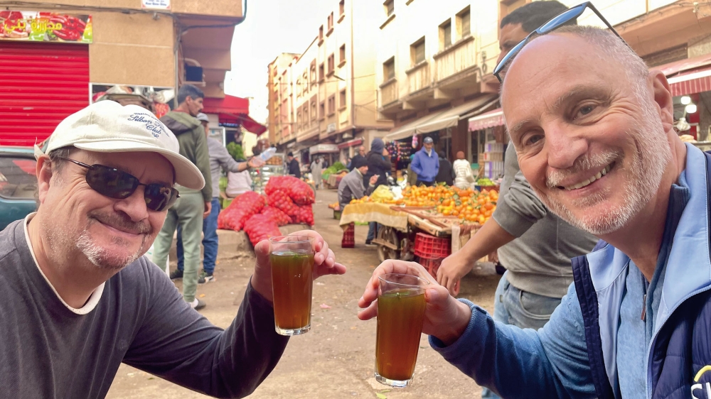 Sydkusten gjorde ett kort besök till fots i den marockanska gränsorten och vi fick bland annat uppleva en fredagsmarknad där det främst såldes frukt, grönsaker och bakverk. Vi köpte en kasse med spritärtor, vitlök, apelsiner och rödlök, ett par bröd och drack myntate. När vi efter två timmar växlade tillbaka våra dirhams hade vi gjort av med totalt åtta euro, inkluderat växlingsavgift.