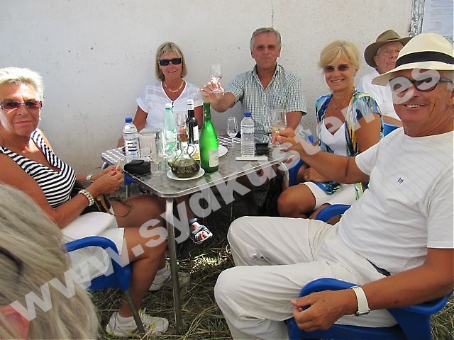 Bara en kvarts resa från El Gastor ligger Algodonales, där svenskarna Karin Eliasson och Lars Hederlund driver kursgården Casa Acequía. De tog emot med svala drycker och goda tilltugg, medan Sydkustens Mats Björkman lagade en jättelik lantpaella och tipsade om hur man gör den bästa spanska risrätten. Många bad om påfyllning, så helt illa smakade nog inte anrättningen.