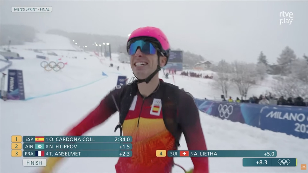 Den spanska truppen i Milano-Cortina har upplevt en oförglömlig dag i Bormio, där skidalpinismen gjorde sin olympiska debut. Inom loppet av en knapp halvtimme lyckades Spanien säkra två medaljer, en bedrift som saknar motstycke i landets vinterolympiska historia. Det var 31-årige Oriol Cardona som stod för den största prestationen när han vann guld i sprinten. Hans seger innebär att Spanien kliver högst upp på prispallen i ett vinter-OS för första gången sedan 1972, då Francisco "Paquito" Fernández Ochoa vann slalomguld i Sapporo.
