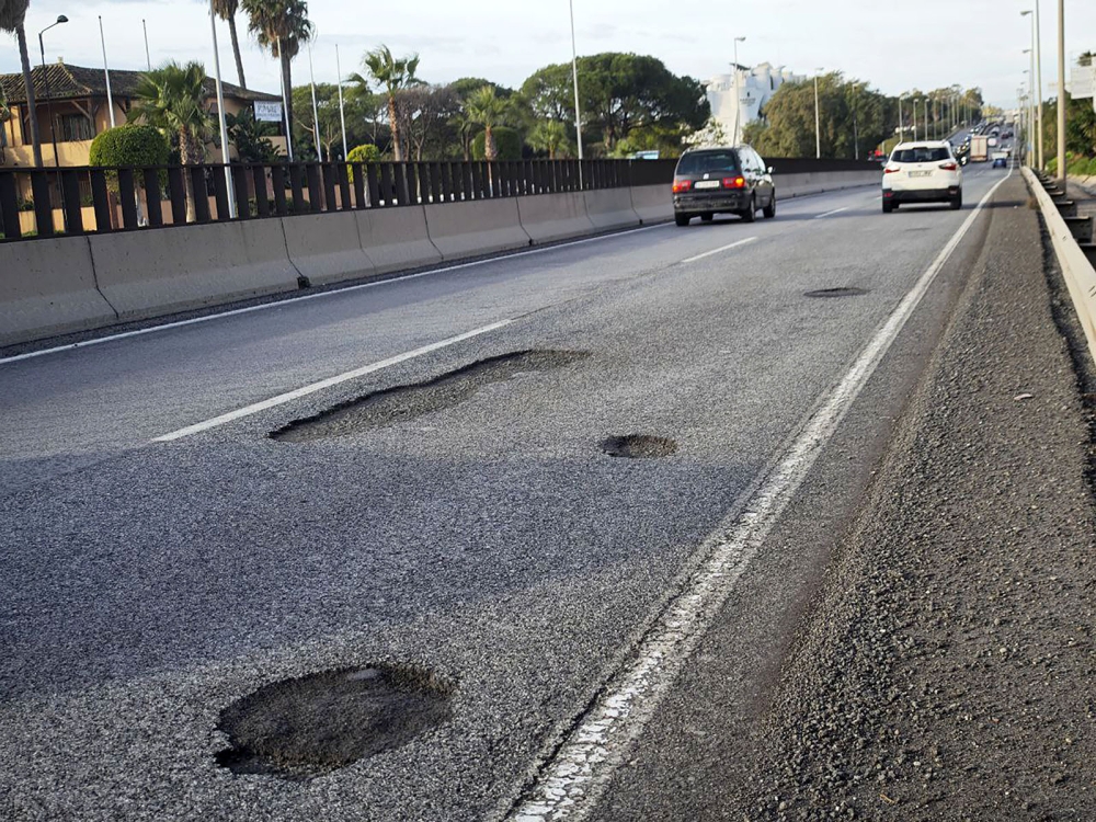 Situationen på A-7 beskrivs som kritisk då sträckan belastas av hård trafik med ett snitt på 65.000 fordon dagligen, en siffra som stiger till över 100.000 under turistsäsongen. Det dåliga skicket på vägen har förvärrats ytterligare av den senaste tidens regn, vilket tvingar förare till farliga manövrar och tvärinbromsningar för att undvika hålen.