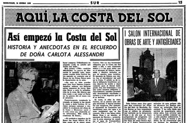 30 nov 2020 | 06:54TORREMOLINOS Hon var kvinna, företagare och en av grundarna till turismen på Costa del Sol, redan innan spanska inbördeskriget bröt ut. Hon blev svärmor till kultförklarade regissören Edgar Neville och främjade bildandet av Torremolinos första solidaritetsnätverk, Las Carmelitas de Montemar. För kustsvenskarna är hon kanske mest känd för att ha givit namn åt kommunens huvudgata, Avenida Carlota Alessandri.