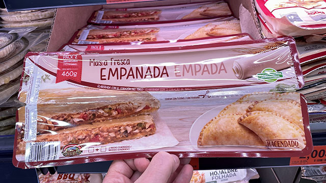 Ibland köper jag hem kyld smördeg av typen empanada, som inte expanderar när den gräddas. Förutom att laga traditionell empanada gallega är den också utmärkt till exempelvis smördegsinbakad lax med stekt vitkål och keso.