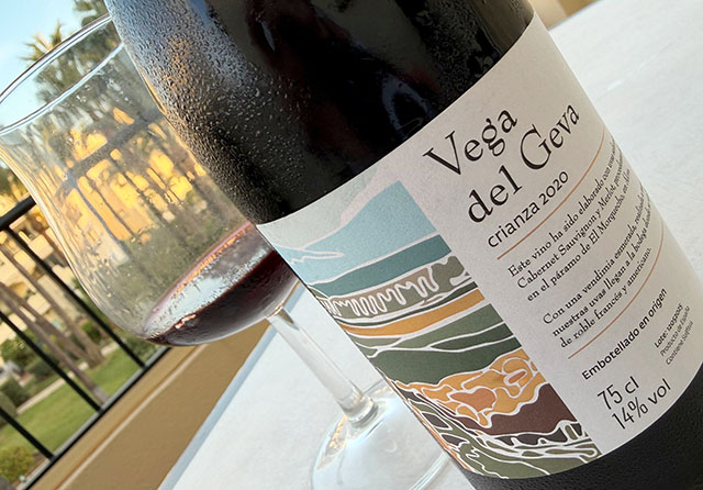 Vega del Geva Crianza 2020 produceras av Bodega Pérez Hidalgo vid deras vingård i Álora. Den ligger på vägen upp mot den spektakulära vandringsleden Caminito del Rey. Druvor som använts är syrah, cabernet sauvignon och merlot.