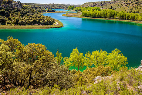 Mitt i hjärtat av La Mancha ligger en riktig liten oas, bestående av lagunerna Ruidera. Här i naturparken går det att njuta av sköna bad i en vacker miljö. Vattnet skiftar från turkost till jadegrönt. Här och var finns små vattenfall som med sitt porlande ljud närmast gör Ruidera till ett utomhusspa.