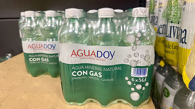 Jag är kräsen med mineralvatten. Det är få som jag tycker om och jag har ingen Sodastream hemma, trots att jag dricker kolsyrat vatten varje dag. Mercadonas egen ”con gas” AguaDoy är en skatt och har ingenting att avundas mer kända och dyra märken i fina gröna glasflaskor från Italien… Det kostar 1,74 euro per sexpack (29 cent per 50 centiliters flaska). Tummen upp för denna goda och billiga måltidsdryck. Finns även på 1,5 liters flaska.