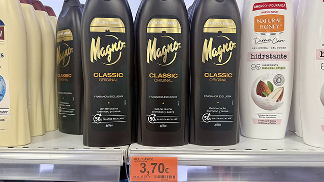 När vi ändå är inne på klassiska spanska dofter vill jag rekommendera duschkrämen Magno Classic. Under många år använde jag en annan spansk favorit i badrummet, Sanex men de senaste åren har den tyvärr blivit allt ”vattnigare” och räcker inte lika länge. Magno kostar 3,70 euro.