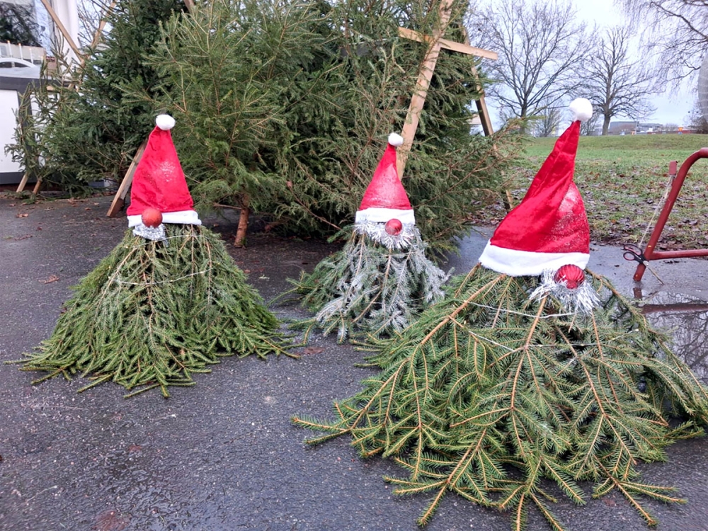 Vi reser bort på jullovet och bestämde oss för att ta in en gran redan andra advent. Det var lite oklart om det fanns någon granförsäljning i den lilla staden, men så fick jag syn på lite granar utanför korvkiosken.