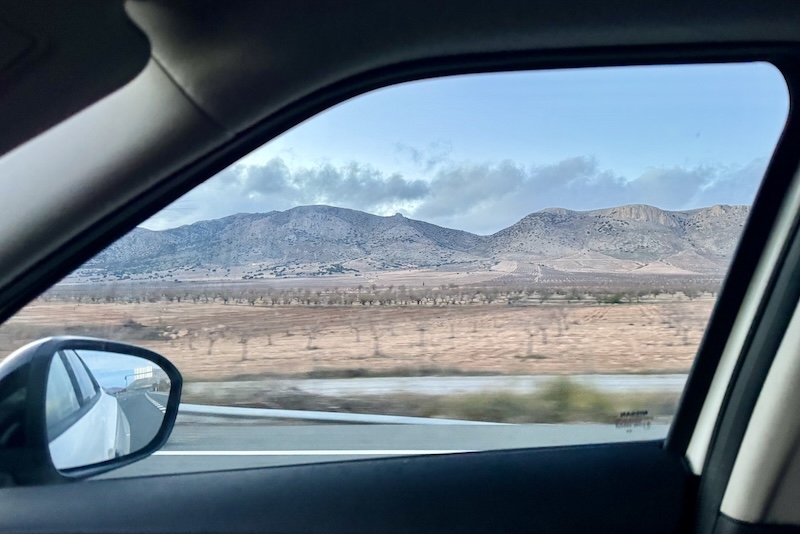 Resan var på knappt 50 mil enkel väg. Som kallast på vägen upp var det 3 grader och som varmast på vägen hem var det 23 grader. I båda ändarna mycket trafik. Men där emellan mil efter mil i totalt mörker. Att vara på väg, rulla genom ett föränderligt landskap, genom Málaga, Granada, Almería, Murcia och Alicante, får mig att känna mig levande och del av spännande, mångfacetterad värld.